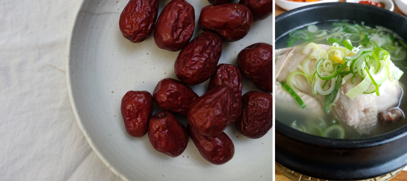 - 약재: 대추 3~4개, 인삼 3~4조각, 생강 2조각, 마늘 2쪽, 대파 1대